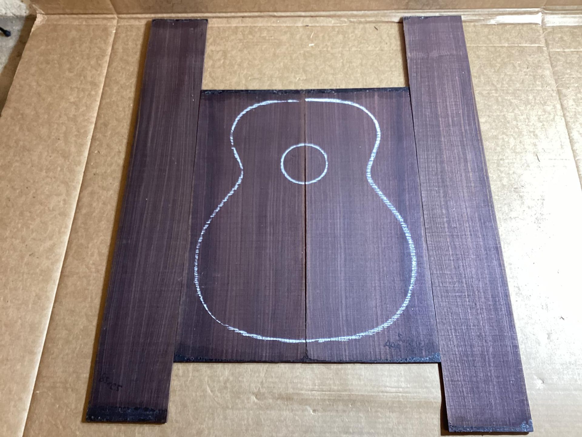 Dalbergia latifolia imported from a partner business from India which was responsibly sourced through the government auctions. Expertly prepared and seasoned. Dimensions for guitar fretboards: These are standard size and will fit western, classical or electric guitar. 530x70x9mm Dimensions for bass fretboards: 4 string - 720 x 75 x 9 mm 5 string - 720 x 85 x 9 mm 6 string - 720 x 95 x 9 mm Dimensions for back and sides CLASSICAL: Back - 550x200mm Sides - 800x110mm Dimensions for back and sides WESTERN: Back - 550x220mm Sides - 850x120mm Dimensions for headplate: 220x90-95x3.5mm Dimensions for bridge blanks: 200x52x15mm These will fit standard classical and western size bridges. Indian rosewood grading explained. Indian rosewood is one of the most stunning and desirable materials used for musical instruments fretboards and this is due to its density and appearance. The fretboard along with the neck, plays an important part in structural integrity of the instrument and also important factor in how the instrument will respond tonally. We are grading our fretboards taking into account those two factors. Colour range and intensity and general appearance. Higher grades will have a range of dark brown, and/or black and/or purple colours across the blank. Those fretboards will be more pleasing to look at and they will have a higher ‘wow’ factor. Grain straightness and cut. Higher grades Indian rosewood fretboards will be quartersawn or nearly quartersawn with the grain orientation being 80-90 degrees with the face of the blank and running straight and uninterrupted across the board. A grade - not perfectly quartersawn. The grain might be curved and wide and not running perfectly straight across the fretboard. For example one end of the fretboard might be quartersawn and the grain might be ending slab sawn on the other end. These fretboards might have a knot. It will have a lesser amount of the colour range and intensity. AA grade - these fretboards will be quartersawn or near with the grain running across the board and covering the most of the material. The grain will be wider than AAA and might be slightly curved. These fretboards might be a downgraded AAA features due to a knot. The AA grade fretboards will have an excellent range of colours and intensity and will have a great ‘wow’ factor. AAA grade - the AAA grade will be the most scarce and the most difficult to yield from a log. I reckon 20-30% of the log will be suitable for this grade. These fretboards will be quartersawn 80-90 degrees and will have the grain running straight across the whole board. The grain will be narrower than the AA grade. The AAA grades will have an excellent ‘wow’ factor. The colour range and intensity of these fretboards will be the most stunning. Pinholes/defects - the fretboards with pinholes and defects won’t be sold under these 3 grades and if sold, they will be advertised as such. B grade - these fretboards will be something that perhaps shouldn't be used on guitars and they will likely be used to make a bookmatched headplates as they might have a unique grain pattern when resawed and bookmatched. If offered for sale, the B grade will be heavily discounted. Pinholes/defects - the fretboards with pinholes and defects won’t be sold under these 3 grades and if sold, they will be advertised as such. Mastergrade - when dealing with large amount of Indian rosewood fretboards, we will come across some superb materials. These will be very rare and the most unique and will be advertised as Mastergrade. - when dealing with large amount of Indian rosewood fretboards, we will come across some superb materials. These will be very rare and the most unique and will be advertised as Mastergrade.